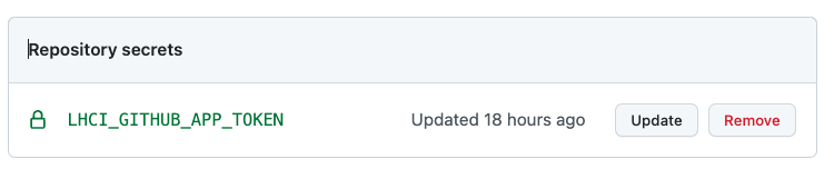 프로젝트 Settings -> Sectets > Actions -> Repository secrets에 LHCI_GITHUB_APP_TOKEN 추가