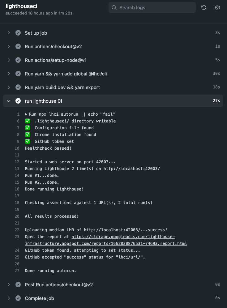 - run: yarn && yarn global add @lhci/cli // 프로젝트 패키지 설치와 @lhci/cli 추가