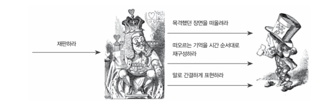 모자 장수는 왕에게 증언할 책임은 있지만, 증언을 위한 구체적인 방법이나 절차에 대해서는 최대한의 자유를 누린다.