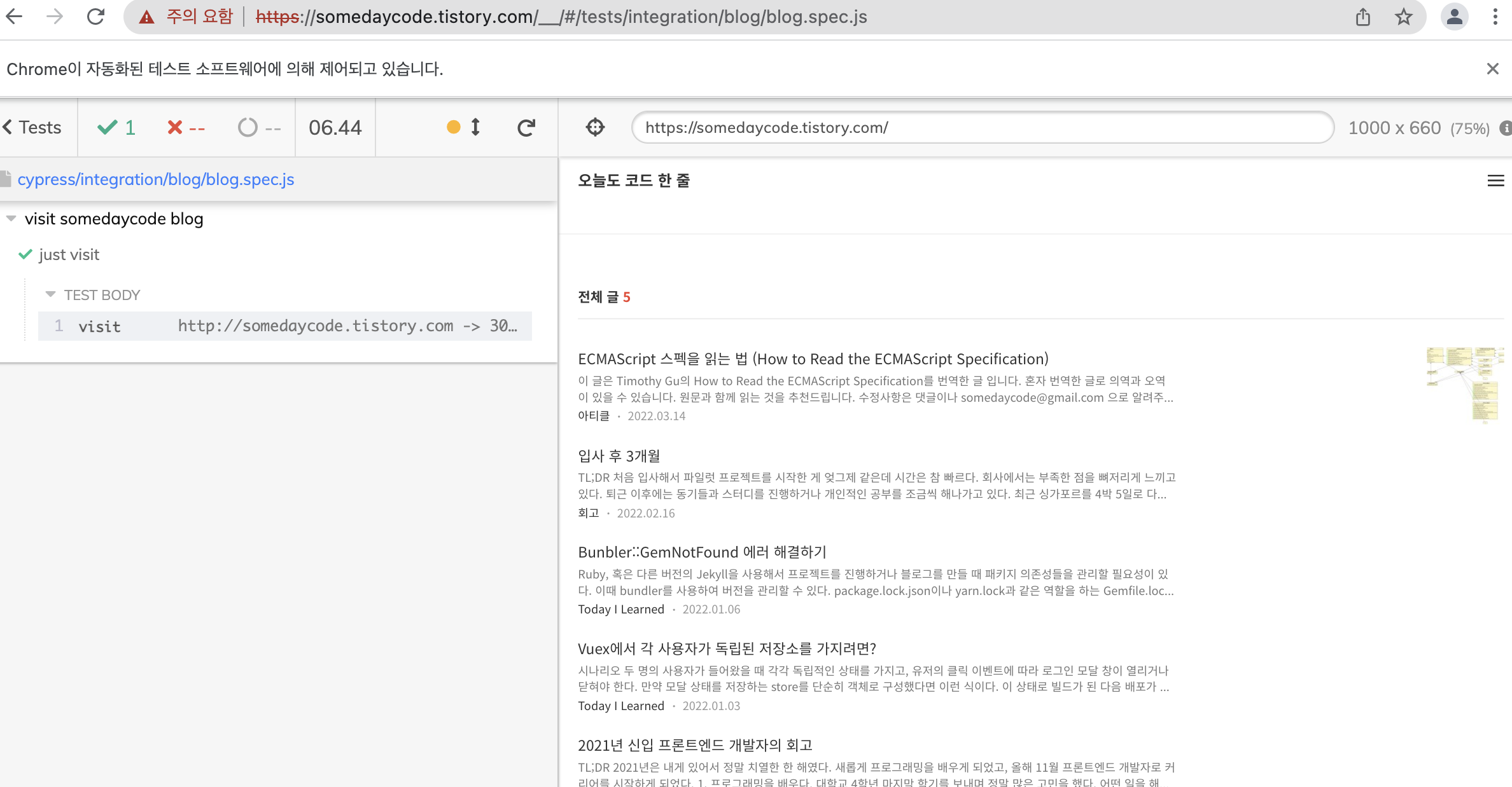 cypress 창에서는 다음과 같은 경고창을 보여준다.