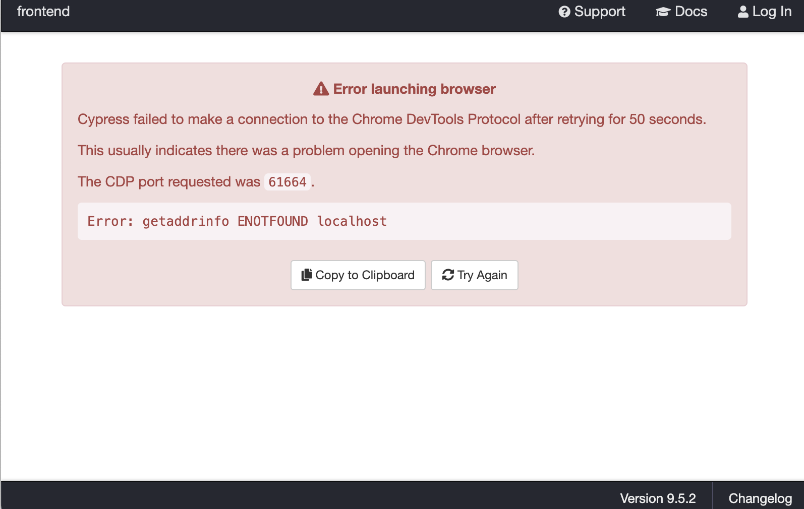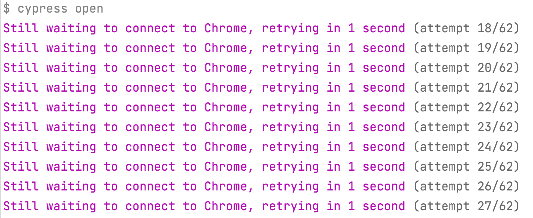 Cypress run won’t finish, stuck while making connection to Chrome · Issue #6540 · cypress-io/cypress